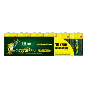 The GoGreen Power® 9V Alkaline 12 pack is a smart choice for eco-conscious consumers. GoGreen makes the world's first batteries with no toxic lead, cadmium, or mercury. We need batteries to power critical devices in our lives from TV remotes to the kids' favorite toys but disposing of them in a landfill is bad for the environment. As they break down, they can leach chemicals into groundwater and release known carcinogens.