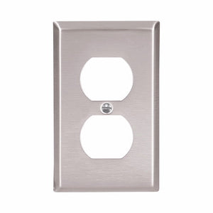 Eaton Duplex receptacle wallplate, Stainless steel, Duplex receptacle Cutout, Stainless steel, Single- gang, Standard, ED Box1